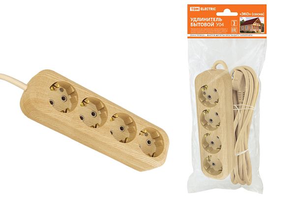 При подборе розеток, выключателей и других элементов для работы с электроэнергией учитывают не только электротехнические параметры, но и эстетику. Удлинитель бытовой У04 4 гнезда, 5метров,2П+3, ПВС 3х1мм2 "Эко" (сосна) 16А/250В TDM (SQ1303-2012) — одна из лучших моделей в своем классе по обоим критериям. Производитель TDM сделал ставку на простую надежную конструкцию и современные материалы, которые обладают высокой устойчивостью к износу. Продукция прошла строгую проверку на безопасность и рассчитана на многолетнюю эксплуатацию в интенсивном режиме. Как официальный дистрибьютор мы готовы поставить любое количество товаров в кратчайшие сроки.