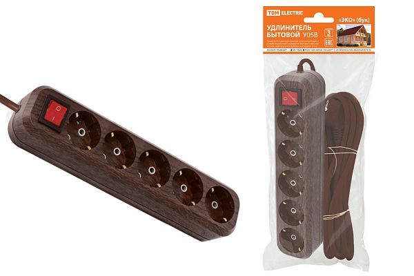 При подборе розеток, выключателей и других элементов для работы с электроэнергией учитывают не только электротехнические параметры, но и эстетику. Удлинитель бытовой У05В выключатель, 5 гнезд, 5метров,2П+3, ПВС 3х1мм2 "Эко" (бук) 16А/250В TDM (SQ1303-3122) — одна из лучших моделей в своем классе по обоим критериям. Производитель TDM сделал ставку на простую надежную конструкцию и современные материалы, которые обладают высокой устойчивостью к износу. Продукция прошла строгую проверку на безопасность и рассчитана на многолетнюю эксплуатацию в интенсивном режиме. Как официальный дистрибьютор мы готовы поставить любое количество товаров в кратчайшие сроки.