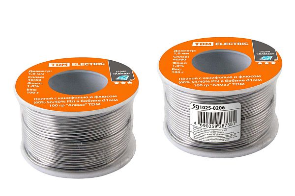 Залогом качественного электромонтажа является правильный выбор расходников и инструмента. Припой с канифолью и флюсом (60% Sn/40% Pb) в бобине d1мм 100 гр "Алмаз" TDM (SQ1025-0206) — проверенное решение, с которым работа пойдет гораздо быстрее, а результат будет соответствовать строгим отраслевым стандартам и другим нормативным требованиям. Позиция SQ1025-0206 пользуется спросом и у профессионалов, обслуживающих сложные и ответственные объекты, и у обычных пользователей, которые сталкиваются с аналогичными задачами в быту. Работать с товарами TDM действительно просто, а их быструю доставку мы берем на себя.