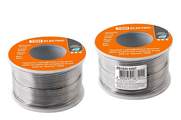 Залогом качественного электромонтажа является правильный выбор расходников и инструмента. Припой с канифолью и флюсом (60% Sn/40% Pb) в бобине d1мм 250 гр "Алмаз" TDM (SQ1025-0207) — проверенное решение, с которым работа пойдет гораздо быстрее, а результат будет соответствовать строгим отраслевым стандартам и другим нормативным требованиям. Позиция SQ1025-0207 пользуется спросом и у профессионалов, обслуживающих сложные и ответственные объекты, и у обычных пользователей, которые сталкиваются с аналогичными задачами в быту. Работать с товарами TDM действительно просто, а их быструю доставку мы берем на себя.