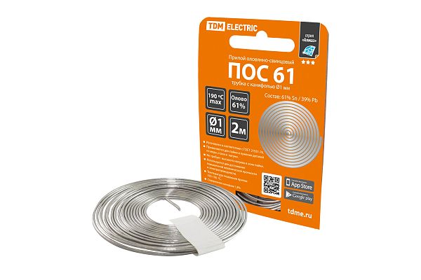 Залогом качественного электромонтажа является правильный выбор расходников и инструмента. Припой ПОС 61, трубка с канифолью, ГОСТ 21931-76, Ø1 мм, 2 м, спираль, серия "Алмаз" TDM (SQ1025-0301) — проверенное решение, с которым работа пойдет гораздо быстрее, а результат будет соответствовать строгим отраслевым стандартам и другим нормативным требованиям. Позиция SQ1025-0301 пользуется спросом и у профессионалов, обслуживающих сложные и ответственные объекты, и у обычных пользователей, которые сталкиваются с аналогичными задачами в быту. Работать с товарами TDM действительно просто, а их быструю доставку мы берем на себя.