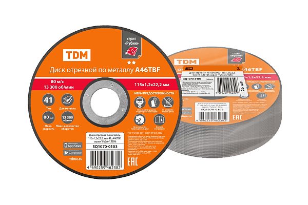 Залогом качественного электромонтажа является правильный выбор расходников и инструмента. Диск отрезной по металлу, 115х1,2х22,2, тип 41, A46TBF, серия "Рубин", TDM (SQ1070-0103) — проверенное решение, с которым работа пойдет гораздо быстрее, а результат будет соответствовать строгим отраслевым стандартам и другим нормативным требованиям. Позиция SQ1070-0103 пользуется спросом и у профессионалов, обслуживающих сложные и ответственные объекты, и у обычных пользователей, которые сталкиваются с аналогичными задачами в быту. Работать с товарами TDM действительно просто, а их быструю доставку мы берем на себя.