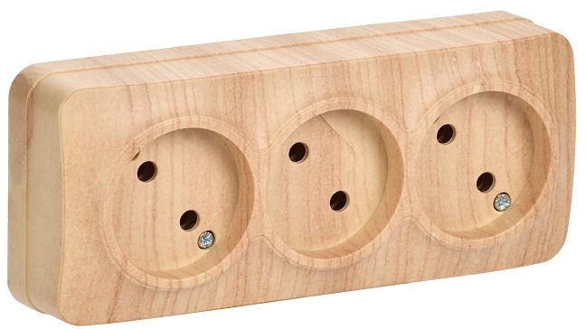 При подборе розеток, выключателей и других элементов для работы с электроэнергией учитывают не только электротехнические параметры, но и эстетику. Розетка трехместная для открытой установки РС23-2-ХС без заземления 10А GLORY сосна IEK (ERH30-K34-10) — одна из лучших моделей в своем классе по обоим критериям. Производитель IEK сделал ставку на простую надежную конструкцию и современные материалы, которые обладают высокой устойчивостью к износу. Продукция прошла строгую проверку на безопасность и рассчитана на многолетнюю эксплуатацию в интенсивном режиме. Как официальный дистрибьютор мы готовы поставить любое количество товаров в кратчайшие сроки.