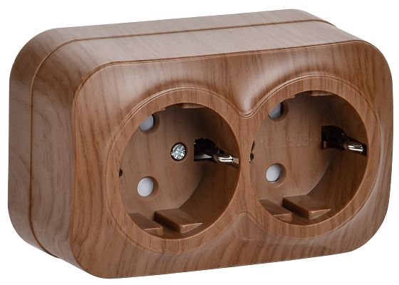 При подборе розеток, выключателей и других элементов для работы с электроэнергией учитывают не только электротехнические параметры, но и эстетику. Розетка двухместная для открытой установки РСш22-3-ХД с заземлением и защитной шторкой 16А GLORY дуб IEK (ERH24-K24-16) — одна из лучших моделей в своем классе по обоим критериям. Производитель IEK сделал ставку на простую надежную конструкцию и современные материалы, которые обладают высокой устойчивостью к износу. Продукция прошла строгую проверку на безопасность и рассчитана на многолетнюю эксплуатацию в интенсивном режиме. Как официальный дистрибьютор мы готовы поставить любое количество товаров в кратчайшие сроки.
