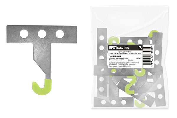 Электротехническая инфраструктура на объекте может иметь разную конфигурацию, в том числе довольно сложную со множеством подключенных потребителей, однако строгие требования к безопасности неизменны. Они прописаны в отраслевых стандартах и другой нормативной документации. И зависит итоговый результат непосредственно от качества электромонтажа и используемых комплектующих. Крюк для люстры (для установки в коробку СП D70х72мм) TDM (SQ1402-9504) — небольшая, но очень важная деталь, которая тоже отвечает за корректную работу оборудования. Устанавливается довольно просто, но с эксплуатационными нагрузками при этом справляется на отлично. Качество гарантировано многоступенчатым контролем на заводе TDM. При заказе уточните артикул SQ1402-9504 и количество позиций.