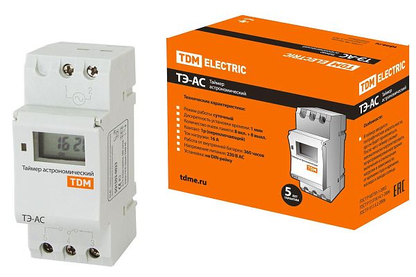 Таймер электронный ТЭ-АС-1мин/24ч-8on/off-16А-DIN (астрономический) TDM (SQ1503-0023) — современное решение для контроля нагрузки в сети, предотвращения перегрузок и других аварийных ситуаций, способных повлиять на подключенных потребителей. Такое низковольтное оборудование рассчитано на работу при номинальном напряжении до 1000 вольт. Производитель TDM давно представлен на электротехническом рынке, его устройства функционируют на объектах самого разного назначения, их рекомендуют профессиональные электрики благодаря высокой надежности, безотказности и безопасности. Подтвердите заказ на любое количество артикула SQ1503-0023, и мы оперативно отправим его по России.