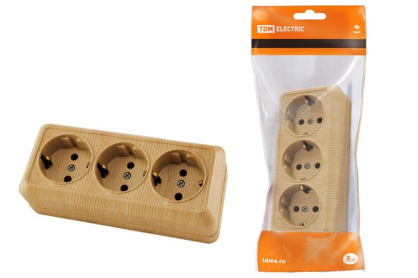 При подборе розеток, выключателей и других элементов для работы с электроэнергией учитывают не только электротехнические параметры, но и эстетику. Розетка 3-х местная горизонтальная 2П+3 открытой установки IP20 16A сосна "Ладога" TDM (SQ1801-0426) — одна из лучших моделей в своем классе по обоим критериям. Производитель TDM сделал ставку на простую надежную конструкцию и современные материалы, которые обладают высокой устойчивостью к износу. Продукция прошла строгую проверку на безопасность и рассчитана на многолетнюю эксплуатацию в интенсивном режиме. Как официальный дистрибьютор мы готовы поставить любое количество товаров в кратчайшие сроки.