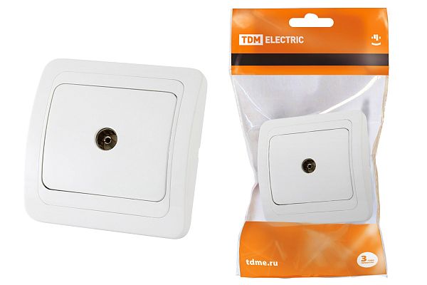 При подборе розеток, выключателей и других элементов для работы с электроэнергией учитывают не только электротехнические параметры, но и эстетику. Розетка TV простая (0-2400 Гц, "мама") белая "Валдай" TDM (SQ1804-0014) — одна из лучших моделей в своем классе по обоим критериям. Производитель TDM сделал ставку на простую надежную конструкцию и современные материалы, которые обладают высокой устойчивостью к износу. Продукция прошла строгую проверку на безопасность и рассчитана на многолетнюю эксплуатацию в интенсивном режиме. Как официальный дистрибьютор мы готовы поставить любое количество товаров в кратчайшие сроки.