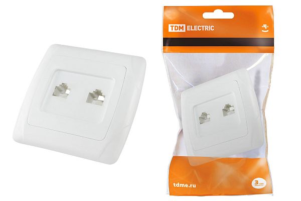При подборе розеток, выключателей и других элементов для работы с электроэнергией учитывают не только электротехнические параметры, но и эстетику. Розетка двойная телефонная RJ11 белая "Онега" TDM (SQ1805-0021) — одна из лучших моделей в своем классе по обоим критериям. Производитель TDM сделал ставку на простую надежную конструкцию и современные материалы, которые обладают высокой устойчивостью к износу. Продукция прошла строгую проверку на безопасность и рассчитана на многолетнюю эксплуатацию в интенсивном режиме. Как официальный дистрибьютор мы готовы поставить любое количество товаров в кратчайшие сроки.