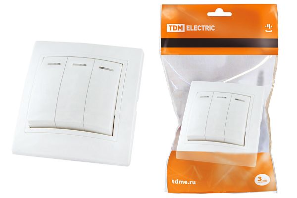 При подборе розеток, выключателей и других элементов для работы с электроэнергией учитывают не только электротехнические параметры, но и эстетику. Выключатель 3 кл. с подсветкой 10А белый "Таймыр" TDM (SQ1814-0006) — одна из лучших моделей в своем классе по обоим критериям. Производитель TDM сделал ставку на простую надежную конструкцию и современные материалы, которые обладают высокой устойчивостью к износу. Продукция прошла строгую проверку на безопасность и рассчитана на многолетнюю эксплуатацию в интенсивном режиме. Как официальный дистрибьютор мы готовы поставить любое количество товаров в кратчайшие сроки.