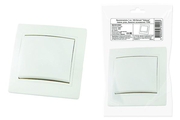 При подборе розеток, выключателей и других элементов для работы с электроэнергией учитывают не только электротехнические параметры, но и эстетику. Выключатель 1 кл. 10А белый "Таймыр" (пром. упак., бакелит. основание) TDM (SQ1814-0501) — одна из лучших моделей в своем классе по обоим критериям. Производитель TDM сделал ставку на простую надежную конструкцию и современные материалы, которые обладают высокой устойчивостью к износу. Продукция прошла строгую проверку на безопасность и рассчитана на многолетнюю эксплуатацию в интенсивном режиме. Как официальный дистрибьютор мы готовы поставить любое количество товаров в кратчайшие сроки.