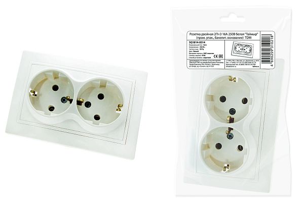 При подборе розеток, выключателей и других элементов для работы с электроэнергией учитывают не только электротехнические параметры, но и эстетику. Розетка двойная 2П+З 16А 250В белая "Таймыр" (пром. упак., бакелит. основание) TDM (SQ1814-0514) — одна из лучших моделей в своем классе по обоим критериям. Производитель TDM сделал ставку на простую надежную конструкцию и современные материалы, которые обладают высокой устойчивостью к износу. Продукция прошла строгую проверку на безопасность и рассчитана на многолетнюю эксплуатацию в интенсивном режиме. Как официальный дистрибьютор мы готовы поставить любое количество товаров в кратчайшие сроки.