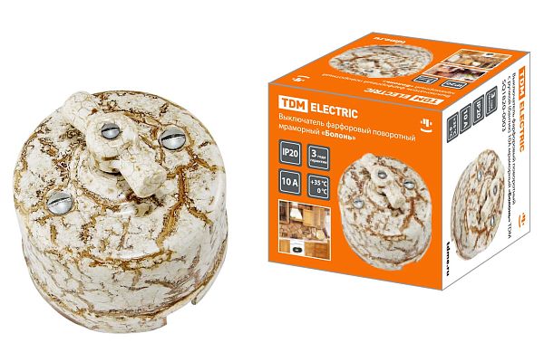 При подборе розеток, выключателей и других элементов для работы с электроэнергией учитывают не только электротехнические параметры, но и эстетику. Выключатель фарфоровый поворотный с ручкой (бантик) 10А мраморный «Болонь» TDM (SQ1820-0003) — одна из лучших моделей в своем классе по обоим критериям. Производитель TDM сделал ставку на простую надежную конструкцию и современные материалы, которые обладают высокой устойчивостью к износу. Продукция прошла строгую проверку на безопасность и рассчитана на многолетнюю эксплуатацию в интенсивном режиме. Как официальный дистрибьютор мы готовы поставить любое количество товаров в кратчайшие сроки.