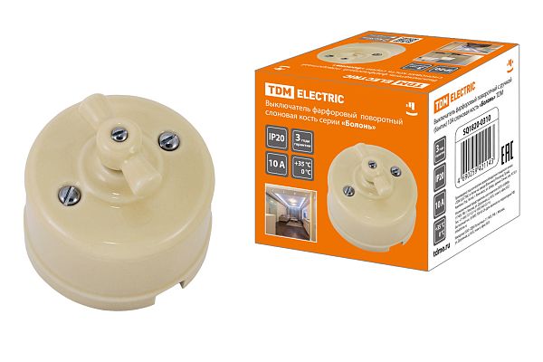 При подборе розеток, выключателей и других элементов для работы с электроэнергией учитывают не только электротехнические параметры, но и эстетику. Выключатель фарфоровый поворотный с ручкой (бантик) 10А сл. кость «Болонь» TDM (SQ1820-0310) — одна из лучших моделей в своем классе по обоим критериям. Производитель TDM сделал ставку на простую надежную конструкцию и современные материалы, которые обладают высокой устойчивостью к износу. Продукция прошла строгую проверку на безопасность и рассчитана на многолетнюю эксплуатацию в интенсивном режиме. Как официальный дистрибьютор мы готовы поставить любое количество товаров в кратчайшие сроки.