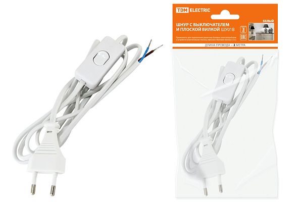 При подборе розеток, выключателей и других элементов для работы с электроэнергией учитывают не только электротехнические параметры, но и эстетику. Шнур с выключателем и плоской вилкой ШУ01В ШВВП 2х0,75мм2 2м. белый TDM (SQ1305-0001) — одна из лучших моделей в своем классе по обоим критериям. Производитель TDM сделал ставку на простую надежную конструкцию и современные материалы, которые обладают высокой устойчивостью к износу. Продукция прошла строгую проверку на безопасность и рассчитана на многолетнюю эксплуатацию в интенсивном режиме. Как официальный дистрибьютор мы готовы поставить любое количество товаров в кратчайшие сроки.