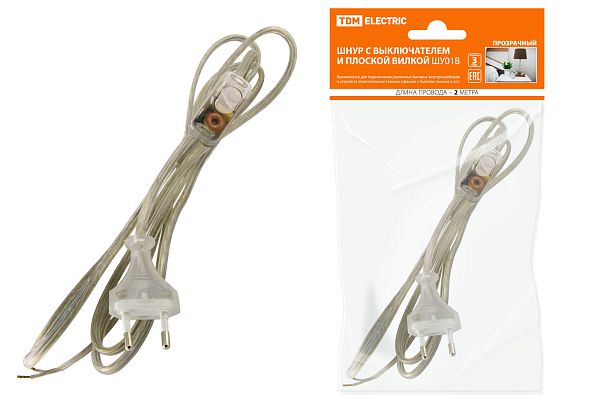 При подборе розеток, выключателей и других элементов для работы с электроэнергией учитывают не только электротехнические параметры, но и эстетику. Шнур с выключателем и плоской вилкой ШУ01В ШВВП 2х0,75мм2 2м. прозрачный TDM (SQ1305-0004) — одна из лучших моделей в своем классе по обоим критериям. Производитель TDM сделал ставку на простую надежную конструкцию и современные материалы, которые обладают высокой устойчивостью к износу. Продукция прошла строгую проверку на безопасность и рассчитана на многолетнюю эксплуатацию в интенсивном режиме. Как официальный дистрибьютор мы готовы поставить любое количество товаров в кратчайшие сроки.
