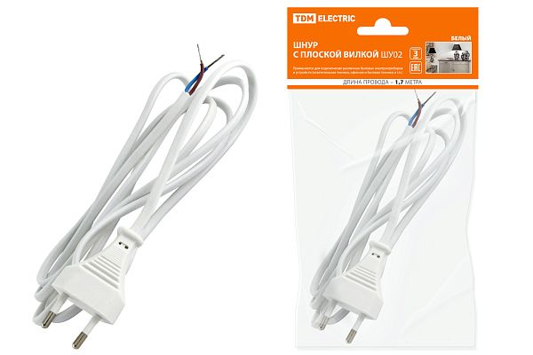 При подборе розеток, выключателей и других элементов для работы с электроэнергией учитывают не только электротехнические параметры, но и эстетику. Шнур с плоской вилкой ШУ02 ШВВП 2х0,75мм2 1,7 м. белый TDM (SQ1305-0011) — одна из лучших моделей в своем классе по обоим критериям. Производитель TDM сделал ставку на простую надежную конструкцию и современные материалы, которые обладают высокой устойчивостью к износу. Продукция прошла строгую проверку на безопасность и рассчитана на многолетнюю эксплуатацию в интенсивном режиме. Как официальный дистрибьютор мы готовы поставить любое количество товаров в кратчайшие сроки.