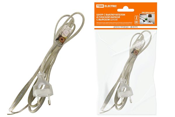 При подборе розеток, выключателей и других элементов для работы с электроэнергией учитывают не только электротехнические параметры, но и эстетику. Шнур с выключателем и плоской вилкой с вырезом ШУ03В ШВВП 2х0,75мм2 2 м. прозрачный TDM (SQ1305-0024) — одна из лучших моделей в своем классе по обоим критериям. Производитель TDM сделал ставку на простую надежную конструкцию и современные материалы, которые обладают высокой устойчивостью к износу. Продукция прошла строгую проверку на безопасность и рассчитана на многолетнюю эксплуатацию в интенсивном режиме. Как официальный дистрибьютор мы готовы поставить любое количество товаров в кратчайшие сроки.