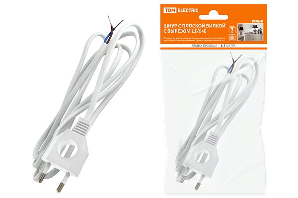 При подборе розеток, выключателей и других элементов для работы с электроэнергией учитывают не только электротехнические параметры, но и эстетику. Шнур с плоской вилкой с вырезом ШУ04 ШВВП 2х0,75мм2 1,7 м. белый TDM (SQ1305-0031) — одна из лучших моделей в своем классе по обоим критериям. Производитель TDM сделал ставку на простую надежную конструкцию и современные материалы, которые обладают высокой устойчивостью к износу. Продукция прошла строгую проверку на безопасность и рассчитана на многолетнюю эксплуатацию в интенсивном режиме. Как официальный дистрибьютор мы готовы поставить любое количество товаров в кратчайшие сроки.