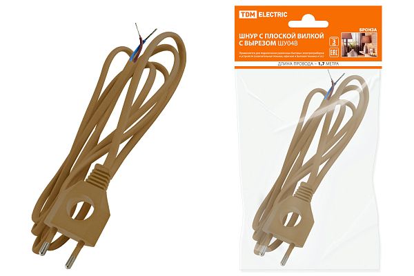 При подборе розеток, выключателей и других элементов для работы с электроэнергией учитывают не только электротехнические параметры, но и эстетику. Шнур с плоской вилкой с вырезом ШУ04 ШВВП 2х0,75мм2 1,7 м. бронза TDM (SQ1305-0033) — одна из лучших моделей в своем классе по обоим критериям. Производитель TDM сделал ставку на простую надежную конструкцию и современные материалы, которые обладают высокой устойчивостью к износу. Продукция прошла строгую проверку на безопасность и рассчитана на многолетнюю эксплуатацию в интенсивном режиме. Как официальный дистрибьютор мы готовы поставить любое количество товаров в кратчайшие сроки.