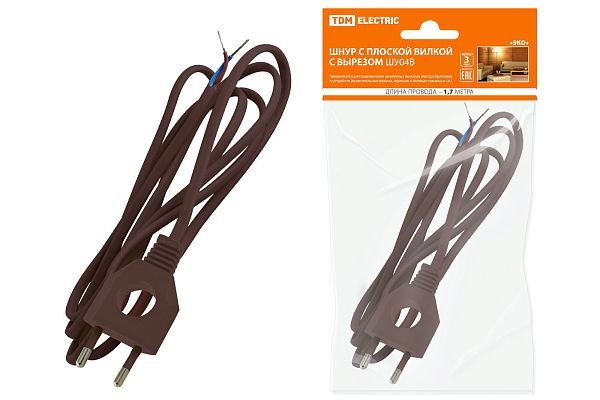 При подборе розеток, выключателей и других элементов для работы с электроэнергией учитывают не только электротехнические параметры, но и эстетику. Шнур с плоской вилкой с вырезом ШУ04 ШВВП 2х0,75мм2 1,7 м. коричневый "ЭКО" TDM (SQ1305-0036) — одна из лучших моделей в своем классе по обоим критериям. Производитель TDM сделал ставку на простую надежную конструкцию и современные материалы, которые обладают высокой устойчивостью к износу. Продукция прошла строгую проверку на безопасность и рассчитана на многолетнюю эксплуатацию в интенсивном режиме. Как официальный дистрибьютор мы готовы поставить любое количество товаров в кратчайшие сроки.