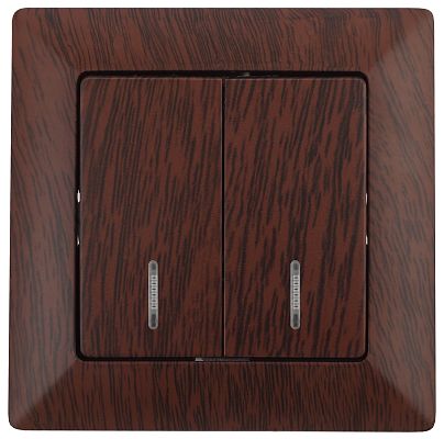 При подборе розеток, выключателей и других элементов для работы с электроэнергией учитывают не только электротехнические параметры, но и эстетику. Выключатель ЭРА Intro Solo 4-105-10 IP20 10А 250В венге двухклавишный с подсветкой (Б0053599) — одна из лучших моделей в своем классе по обоим критериям. Производитель Intro сделал ставку на простую надежную конструкцию и современные материалы, которые обладают высокой устойчивостью к износу. Продукция прошла строгую проверку на безопасность и рассчитана на многолетнюю эксплуатацию в интенсивном режиме. Как официальный дистрибьютор мы готовы поставить любое количество товаров в кратчайшие сроки.