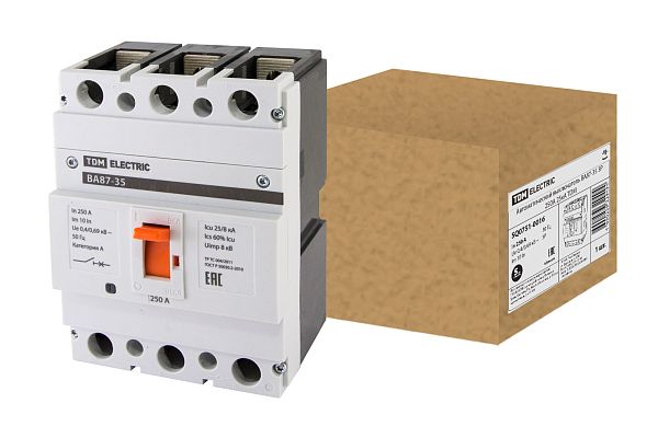 Основное назначение автоматического выключателя — это защита от возможной перегрузки и короткого замыкания. Покупка Выключатель автоматический ВА87-35 3Р 250А 25кА TDM (SQ0751-0016) обеспечит надежную защиту электрооборудования от поломок из-за перегрузок и скачков напряжения. Просим обращать внимание на характеристики TDM.