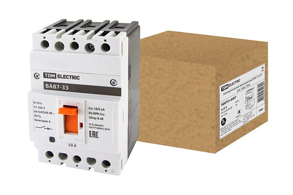 Основное назначение автоматического выключателя — это защита от возможной перегрузки и короткого замыкания. Покупка Выключатель автоматический ВА87-33 3Р 50А 18кА TDM (SQ0751-0007) обеспечит надежную защиту электрооборудования от поломок из-за перегрузок и скачков напряжения. Просим обращать внимание на характеристики TDM.