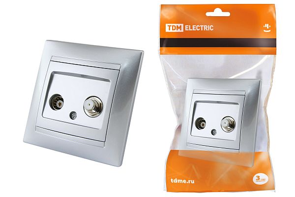 При подборе розеток, выключателей и других элементов для работы с электроэнергией учитывают не только электротехнические параметры, но и эстетику. Розетка TV ("мама") + SAT (F-разъем) 0-2400МГц серебр. металлик "Лама" TDM (SQ1815-0220) — одна из лучших моделей в своем классе по обоим критериям. Производитель TDM сделал ставку на простую надежную конструкцию и современные материалы, которые обладают высокой устойчивостью к износу. Продукция прошла строгую проверку на безопасность и рассчитана на многолетнюю эксплуатацию в интенсивном режиме. Как официальный дистрибьютор мы готовы поставить любое количество товаров в кратчайшие сроки.