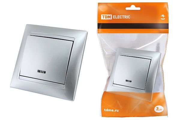 При подборе розеток, выключателей и других элементов для работы с электроэнергией учитывают не только электротехнические параметры, но и эстетику. Выключатель 1 кл. с подсветкой 10А серебр. металлик "Лама" TDM (SQ1815-0204) — одна из лучших моделей в своем классе по обоим критериям. Производитель TDM сделал ставку на простую надежную конструкцию и современные материалы, которые обладают высокой устойчивостью к износу. Продукция прошла строгую проверку на безопасность и рассчитана на многолетнюю эксплуатацию в интенсивном режиме. Как официальный дистрибьютор мы готовы поставить любое количество товаров в кратчайшие сроки.