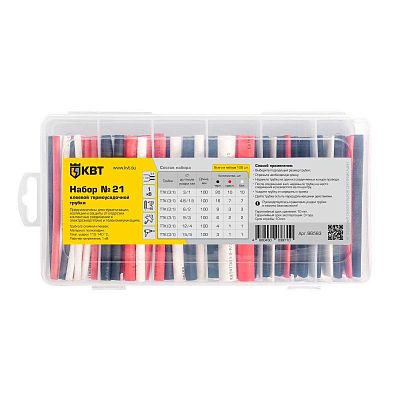 Электротехническая инфраструктура на объекте может иметь разную конфигурацию, в том числе довольно сложную со множеством подключенных потребителей, однако строгие требования к безопасности неизменны. Они прописаны в отраслевых стандартах и другой нормативной документации. И зависит итоговый результат непосредственно от качества электромонтажа и используемых комплектующих. Набор термоусадочных трубок №21 в пластмассовом боксе в нарезке по 100 мм КВТ (86583) — небольшая, но очень важная деталь, которая тоже отвечает за корректную работу оборудования. Устанавливается довольно просто, но с эксплуатационными нагрузками при этом справляется на отлично. Качество гарантировано многоступенчатым контролем на заводе КВТ. При заказе уточните артикул 86583 и количество позиций.