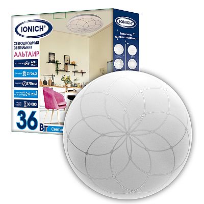 К светотехнике на любом объекте, будь то жилое помещение или коммерческая площадка, предъявляют высокие требования. Необходимо не только продумать конфигурацию всех приборов, безопасную схему подключения, суммарную мощность и нагрузку на сеть, но и учесть требования дизайна, поскольку эстетике сегодня уделяется большое внимание. Светильник светодиодный декоративный ТМ IONICH серия 2219 "Альтаир" 36 Вт 2500 Лм 230 В 6500 К 350 мм IP20 (1757) — современное решение, в котором учтены все требования. За надежность отвечают материалы с большим запасом прочности. Все элементы конструкции без проблем выдерживают интенсивную эксплуатацию. Такой вдумчивый подход к деталям является визитной карточкой бренда IONICH.