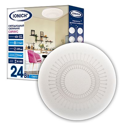 К светотехнике на любом объекте, будь то жилое помещение или коммерческая площадка, предъявляют высокие требования. Необходимо не только продумать конфигурацию всех приборов, безопасную схему подключения, суммарную мощность и нагрузку на сеть, но и учесть требования дизайна, поскольку эстетике сегодня уделяется большое внимание. Светильник светодиодный декоративный ТМ IONICH серия 2160 "Сириус" 24 Вт 1680 Лм 230 В 6500 К 320 мм IP20 (1705) — современное решение, в котором учтены все требования. За надежность отвечают материалы с большим запасом прочности. Все элементы конструкции без проблем выдерживают интенсивную эксплуатацию. Такой вдумчивый подход к деталям является визитной карточкой бренда IONICH.