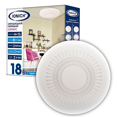 К светотехнике на любом объекте, будь то жилое помещение или коммерческая площадка, предъявляют высокие требования. Необходимо не только продумать конфигурацию всех приборов, безопасную схему подключения, суммарную мощность и нагрузку на сеть, но и учесть требования дизайна, поскольку эстетике сегодня уделяется большое внимание. Светильник светодиодный декоративный ТМ IONICH серия 2160 "Сириус" 18 Вт 1260 Лм 230 В 6500 К 260 мм IP20 (1703) — современное решение, в котором учтены все требования. За надежность отвечают материалы с большим запасом прочности. Все элементы конструкции без проблем выдерживают интенсивную эксплуатацию. Такой вдумчивый подход к деталям является визитной карточкой бренда IONICH.