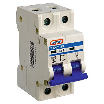 Основное назначение автоматического выключателя — это защита от возможной перегрузки и короткого замыкания. Покупка Автоматический выключатель двухполюсный ВА47-29 2P 32А (С) 6кА ЭНЕРГИЯ (Е0301-0114) обеспечит надежную защиту электрооборудования от поломок из-за перегрузок и скачков напряжения. Просим обращать внимание на характеристики Энергия.