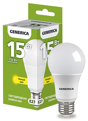 К светотехнике на любом объекте, будь то жилое помещение или коммерческая площадка, предъявляют высокие требования. Необходимо не только продумать конфигурацию всех приборов, безопасную схему подключения, суммарную мощность и нагрузку на сеть, но и учесть требования дизайна, поскольку эстетике сегодня уделяется большое внимание. Лампа светодиодная A60 груша 15Вт 230В 3000К E27 GENERICA IEK (LL-A60-15-230-30-E27-G) — современное решение, в котором учтены все требования. За надежность отвечают материалы с большим запасом прочности. Все элементы конструкции без проблем выдерживают интенсивную эксплуатацию. Такой вдумчивый подход к деталям является визитной карточкой бренда GENERICA.