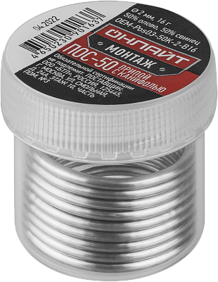 Залогом качественного электромонтажа является правильный выбор расходников и инструмента. Припой ОНЛАЙТ 90 163 OEM-Pos03-50K-2-B16 (банка, 2мм, 16г) (90163) — проверенное решение, с которым работа пойдет гораздо быстрее, а результат будет соответствовать строгим отраслевым стандартам и другим нормативным требованиям. Позиция 90163 пользуется спросом и у профессионалов, обслуживающих сложные и ответственные объекты, и у обычных пользователей, которые сталкиваются с аналогичными задачами в быту. Работать с товарами Онлайт действительно просто, а их быструю доставку мы берем на себя.