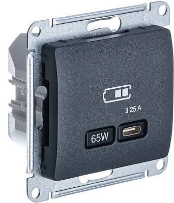 При подборе розеток, выключателей и других элементов для работы с электроэнергией учитывают не только электротехнические параметры, но и эстетику. Glossa Антрацит Розетка USB тип-C 65W высокоскор.заряд. QC, PD, механизм Systeme Electric (Schneider Electric) (GSL000727) — одна из лучших моделей в своем классе по обоим критериям. Производитель Systeme Electric (ранее Schneider Electric) сделал ставку на простую надежную конструкцию и современные материалы, которые обладают высокой устойчивостью к износу. Продукция прошла строгую проверку на безопасность и рассчитана на многолетнюю эксплуатацию в интенсивном режиме. Как официальный дистрибьютор мы готовы поставить любое количество товаров в кратчайшие сроки.