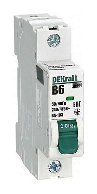 Основное назначение автоматического выключателя — это защита от возможной перегрузки и короткого замыкания. Покупка Автоматический выключатель 1Р 6А х-ка B ВА-103 6кА DEKraft (12205DEK) обеспечит надежную защиту электрооборудования от поломок из-за перегрузок и скачков напряжения. Просим обращать внимание на характеристики DEKraft.