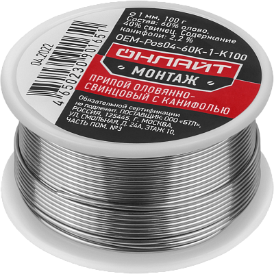 Залогом качественного электромонтажа является правильный выбор расходников и инструмента. Припой ОНЛАЙТ 90 165 OEM-Pos04-60K-1-K100 (катушка, 1мм, 100г) (90165) — проверенное решение, с которым работа пойдет гораздо быстрее, а результат будет соответствовать строгим отраслевым стандартам и другим нормативным требованиям. Позиция 90165 пользуется спросом и у профессионалов, обслуживающих сложные и ответственные объекты, и у обычных пользователей, которые сталкиваются с аналогичными задачами в быту. Работать с товарами Онлайт действительно просто, а их быструю доставку мы берем на себя.