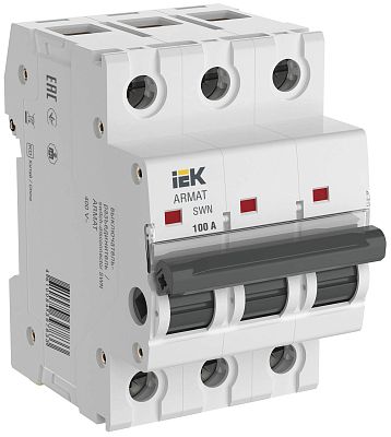 ARMAT Выключатель-разъединитель SWN 3P 100А IEK (AR-SWN-3-100) — современное решение для контроля нагрузки в сети, предотвращения перегрузок и других аварийных ситуаций, способных повлиять на подключенных потребителей. Такое низковольтное оборудование рассчитано на работу при номинальном напряжении до 1000 вольт. Производитель IEK давно представлен на электротехническом рынке, его устройства функционируют на объектах самого разного назначения, их рекомендуют профессиональные электрики благодаря высокой надежности, безотказности и безопасности. Подтвердите заказ на любое количество артикула AR-SWN-3-100, и мы оперативно отправим его по России.