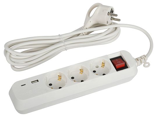 При подборе розеток, выключателей и других элементов для работы с электроэнергией учитывают не только электротехнические параметры, но и эстетику. Удлинитель электрический ЭРА UB-3es-3m-USB c заземлением с выключателем 3 розетки + 1xUSBA+1xUSBC 3м 10А (Б0052898) — одна из лучших моделей в своем классе по обоим критериям. Производитель ЭРА сделал ставку на простую надежную конструкцию и современные материалы, которые обладают высокой устойчивостью к износу. Продукция прошла строгую проверку на безопасность и рассчитана на многолетнюю эксплуатацию в интенсивном режиме. Как официальный дистрибьютор мы готовы поставить любое количество товаров в кратчайшие сроки.