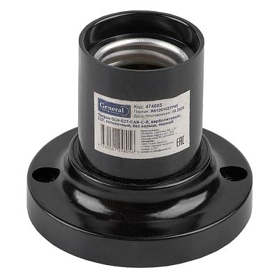 К светотехнике на любом объекте, будь то жилое помещение или коммерческая площадка, предъявляют высокие требования. Необходимо не только продумать конфигурацию всех приборов, безопасную схему подключения, суммарную мощность и нагрузку на сеть, но и учесть требования дизайна, поскольку эстетике сегодня уделяется большое внимание. Патрон General GLH-E27-CAR-C-B, карболитовый, Е27, потолочный, без кольца, черный, 1/20/400 (474005) — современное решение, в котором учтены все требования. За надежность отвечают материалы с большим запасом прочности. Все элементы конструкции без проблем выдерживают интенсивную эксплуатацию. Такой вдумчивый подход к деталям является визитной карточкой бренда General Lighting Systems.