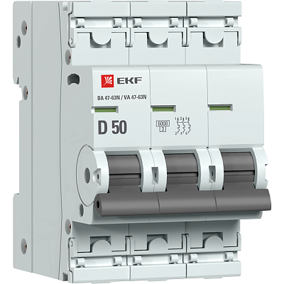 Основное назначение автоматического выключателя — это защита от возможной перегрузки и короткого замыкания. Покупка Автоматический выключатель 3P 50А (D) 6кА ВА 47-63N EKF PROxima (M636350D) обеспечит надежную защиту электрооборудования от поломок из-за перегрузок и скачков напряжения. Просим обращать внимание на характеристики EKF.