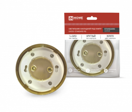 К светотехнике на любом объекте, будь то жилое помещение или коммерческая площадка, предъявляют высокие требования. Необходимо не только продумать конфигурацию всех приборов, безопасную схему подключения, суммарную мощность и нагрузку на сеть, но и учесть требования дизайна, поскольку эстетике сегодня уделяется большое внимание. Светильник накладной GX53S-standard RG металл под лампу GX53 золото IN HOME (4690612012216) — современное решение, в котором учтены все требования. За надежность отвечают материалы с большим запасом прочности. Все элементы конструкции без проблем выдерживают интенсивную эксплуатацию. Такой вдумчивый подход к деталям является визитной карточкой бренда In Home.