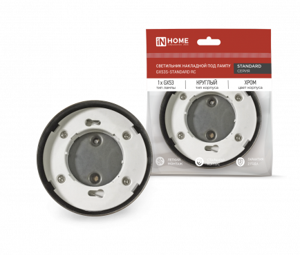 К светотехнике на любом объекте, будь то жилое помещение или коммерческая площадка, предъявляют высокие требования. Необходимо не только продумать конфигурацию всех приборов, безопасную схему подключения, суммарную мощность и нагрузку на сеть, но и учесть требования дизайна, поскольку эстетике сегодня уделяется большое внимание. Светильник накладной GX53S-standard RC металл под лампу GX53 хром IN HOME (4690612012209) — современное решение, в котором учтены все требования. За надежность отвечают материалы с большим запасом прочности. Все элементы конструкции без проблем выдерживают интенсивную эксплуатацию. Такой вдумчивый подход к деталям является визитной карточкой бренда In Home.