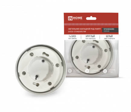 К светотехнике на любом объекте, будь то жилое помещение или коммерческая площадка, предъявляют высокие требования. Необходимо не только продумать конфигурацию всех приборов, безопасную схему подключения, суммарную мощность и нагрузку на сеть, но и учесть требования дизайна, поскольку эстетике сегодня уделяется большое внимание. Светильник накладной GX53S-standard RW металл под лампу GX53 белый IN HOME (4690612012193) — современное решение, в котором учтены все требования. За надежность отвечают материалы с большим запасом прочности. Все элементы конструкции без проблем выдерживают интенсивную эксплуатацию. Такой вдумчивый подход к деталям является визитной карточкой бренда In Home.