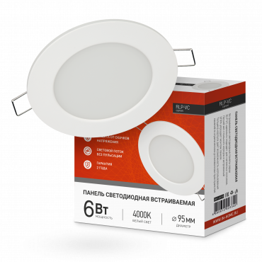 К светотехнике на любом объекте, будь то жилое помещение или коммерческая площадка, предъявляют высокие требования. Необходимо не только продумать конфигурацию всех приборов, безопасную схему подключения, суммарную мощность и нагрузку на сеть, но и учесть требования дизайна, поскольку эстетике сегодня уделяется большое внимание. Панель светодиодная встраиваемая круглая RLP-VC 6Вт 230В 4000К 420Лм 95мм белая IP40 IN HOME (4690612023342) — современное решение, в котором учтены все требования. За надежность отвечают материалы с большим запасом прочности. Все элементы конструкции без проблем выдерживают интенсивную эксплуатацию. Такой вдумчивый подход к деталям является визитной карточкой бренда In Home.