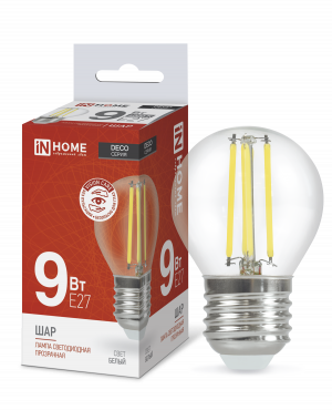 К светотехнике на любом объекте, будь то жилое помещение или коммерческая площадка, предъявляют высокие требования. Необходимо не только продумать конфигурацию всех приборов, безопасную схему подключения, суммарную мощность и нагрузку на сеть, но и учесть требования дизайна, поскольку эстетике сегодня уделяется большое внимание. Лампа светодиодная LED-ШАР-deco 9Вт 230В Е27 4000К 1040Лм прозрачная IN HOME (4690612026282) — современное решение, в котором учтены все требования. За надежность отвечают материалы с большим запасом прочности. Все элементы конструкции без проблем выдерживают интенсивную эксплуатацию. Такой вдумчивый подход к деталям является визитной карточкой бренда In Home.