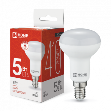 К светотехнике на любом объекте, будь то жилое помещение или коммерческая площадка, предъявляют высокие требования. Необходимо не только продумать конфигурацию всех приборов, безопасную схему подключения, суммарную мощность и нагрузку на сеть, но и учесть требования дизайна, поскольку эстетике сегодня уделяется большое внимание. Лампа светодиодная LED-R39-VC 5Вт 230В Е14 4000К 410Лм IN HOME (4690612030852) — современное решение, в котором учтены все требования. За надежность отвечают материалы с большим запасом прочности. Все элементы конструкции без проблем выдерживают интенсивную эксплуатацию. Такой вдумчивый подход к деталям является визитной карточкой бренда In Home.